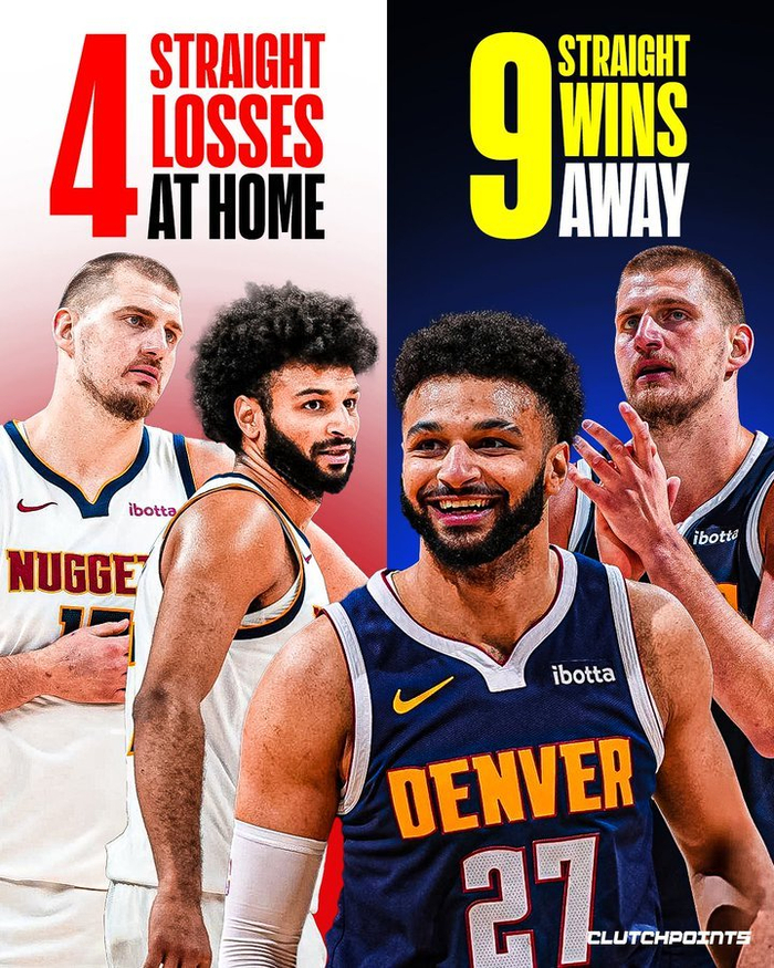 最近4个主场,掘金连续输给公牛、国王、马刺、独行侠。最近9个客场,掘金连续击败国王、快船、森林狼、鹈鹕、火箭、灰熊、太阳、步行者、老鹰。球队目前16胜6负西部第3。