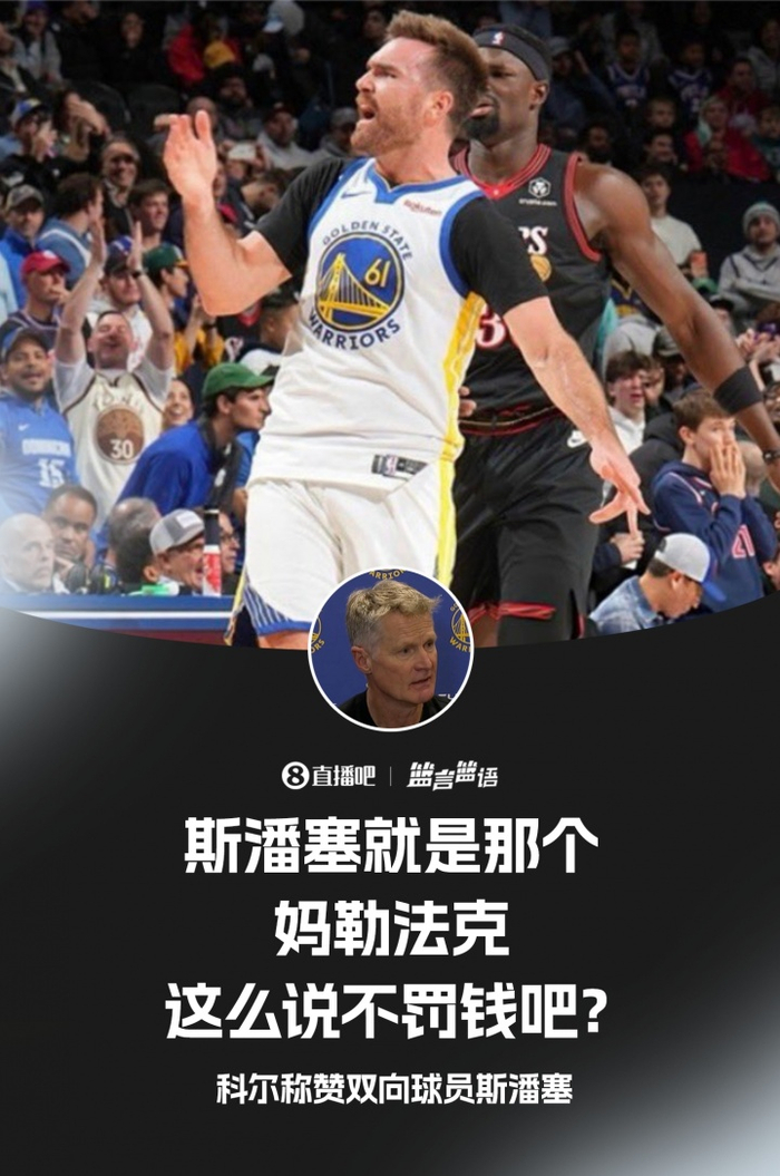 今日赛后,勇士主帅科尔也表示:“现在的情况就是,斯潘塞就是那个妈勒法克,这一点已经变得非常清晰。我能这么说话吗?不会被罚款吧?”