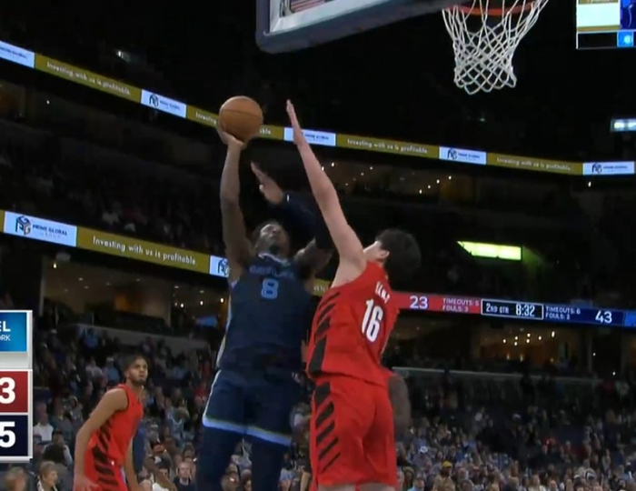 防不住!杨瀚森被小贾伦强攻打中 开拓者被迫再度叫停