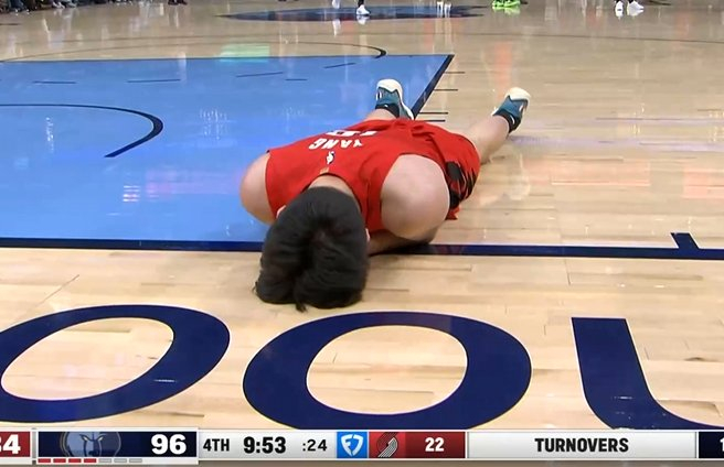 杨瀚森遭遇包夹被埃迪打到面部痛苦倒地 在地上躺了半天没起来