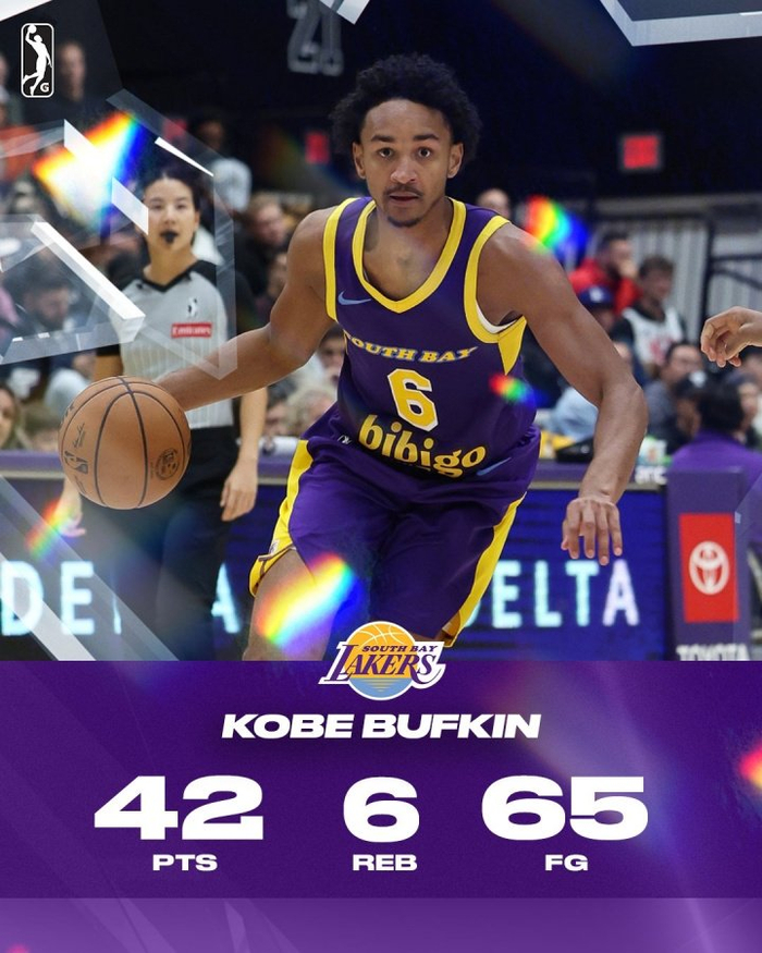 南湾湖人取胜!15号秀科比·巴夫金在G联盟杀疯了 20中13狂砍42分