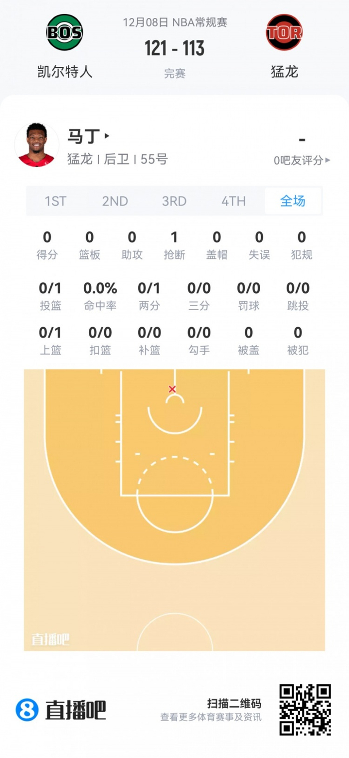 猛龙次轮39号秀阿利贾·马丁 登场4.4分钟