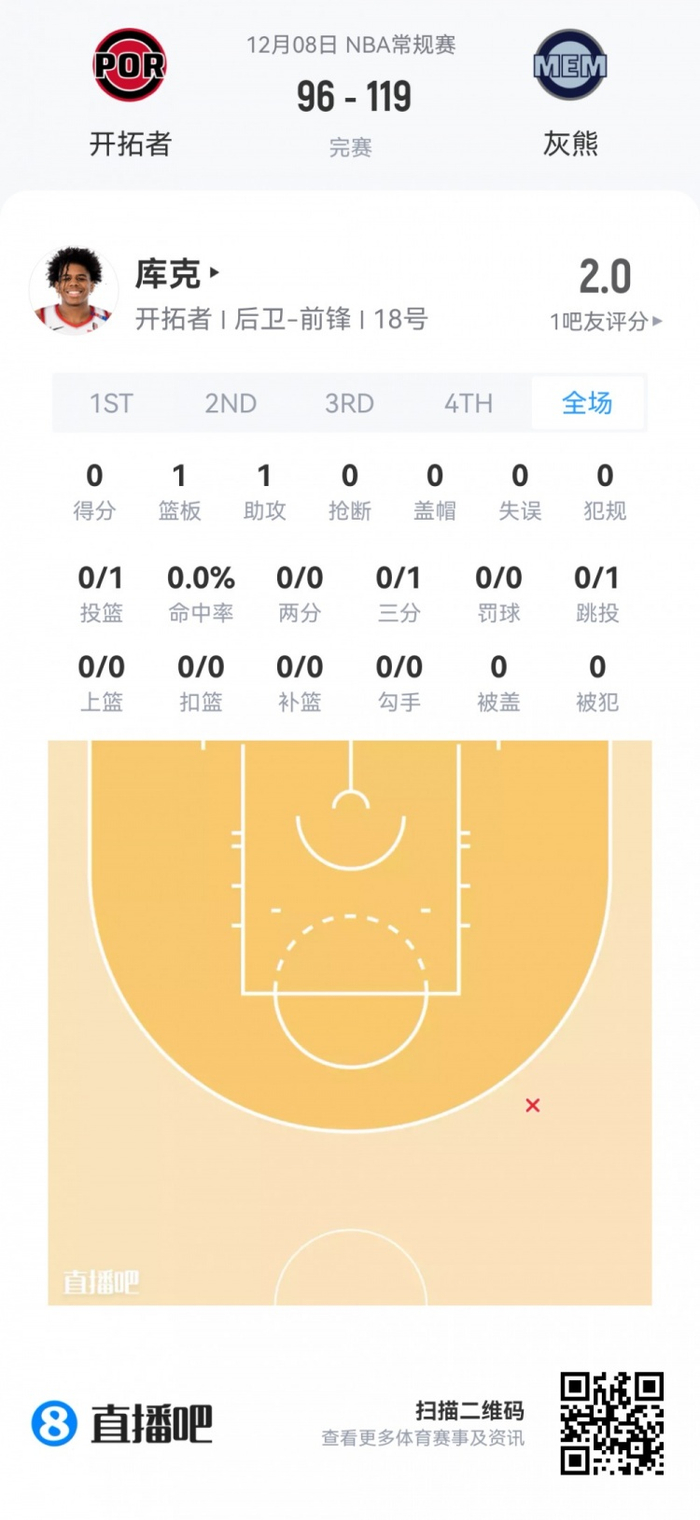 灰熊首轮11号秀科沃德 登场24.7分钟