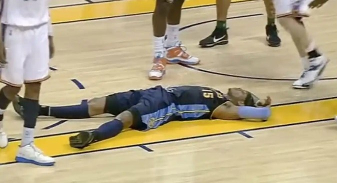 2009-10赛季常规赛,卡梅罗-安东尼在进攻中突然倒地不起,裁判却未中断比赛,导致出现“一躺九打”的奇观。直到过了三十秒,安东尼的队友被投篮犯规比赛被迫中断,才有人能上前去关注安东尼的情况。