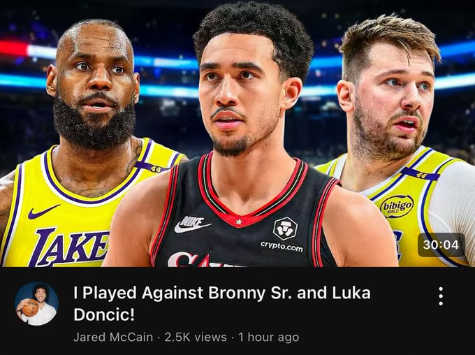 他的标题很有趣:“我跟老布朗尼(指勒布朗·詹姆斯)和卢卡·东契奇打了比赛!”