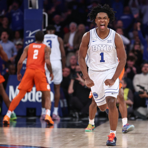 直播吧12月10日讯 NCAA Jimmy V经典赛在尼克斯主场麦迪逊广场花园进行,杨百翰大学以67-64逆转险胜克莱姆森大学,实现22分大逆转,拿下五连胜。开季至今,杨百翰大学的战绩是8胜1负。