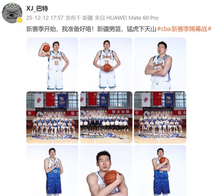 李炎哲配文写道:“新赛季开始,我准备好咯!新疆男篮,猛虎下天山。”