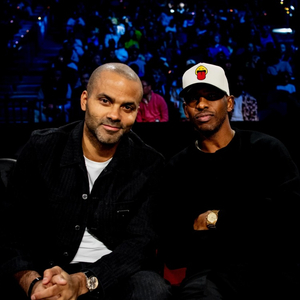 本场比赛,马刺名宿托尼·帕克也来到现场支持老东家。而和他坐在一块看球的是也曾效力过马刺队的克里斯·保罗。