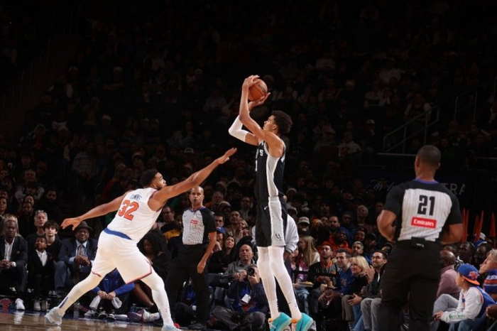 马刺的上一场比赛是在拉斯维加斯与雷霆的美职篮杯半决赛,球队111-109获胜,德文·瓦塞尔23分5篮板4助攻,德阿隆·福克斯22分2篮板4助攻2抢断,斯蒂芬·卡斯尔22分6篮板2助攻,替补出场的文班亚马22分9篮板2助攻2盖帽。法国人在第四节展示其攻防两端的统治力,拿到15分。除了文班亚马,马刺后卫线上人才济济且天赋满满,只是射程稍显不足。战胜雷霆的马刺士气大振,不过从之前的比赛看,马刺外线防守容易出现漏人的情况,尼克斯三分球出手次数和命中率均位居全联盟前列,马刺需要小心的应对。