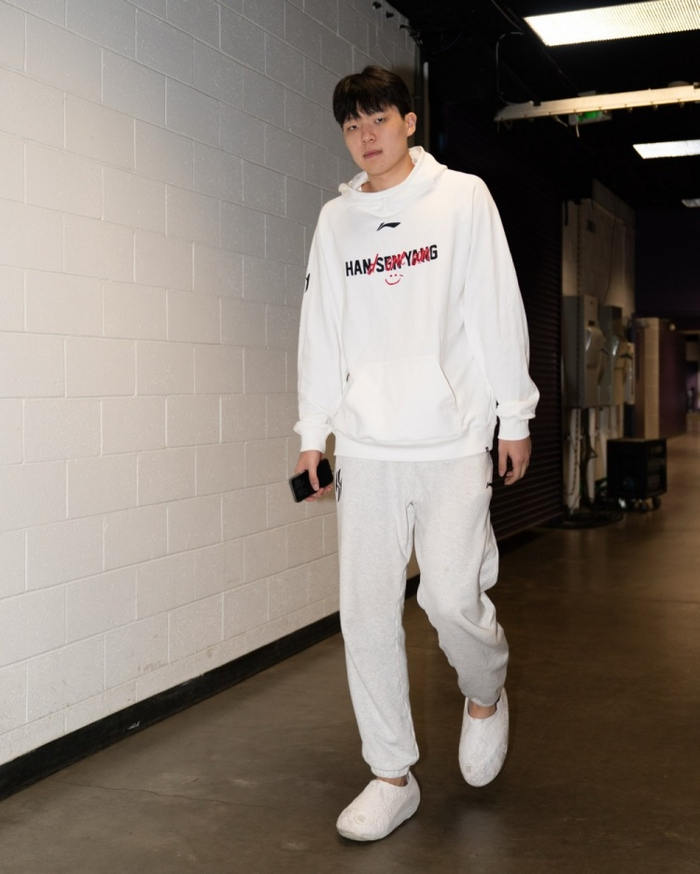 出战G联赛!杨瀚森入场一身浅色运动穿搭 卫衣上印着自己名字