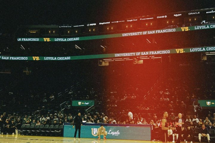 旧金山——当地时间12月17日,旧金山大学男子篮球队在大通中心迎战来自芝加哥的洛约拉大学。这也是球队在 2025-26赛季首次在大通中心出战。