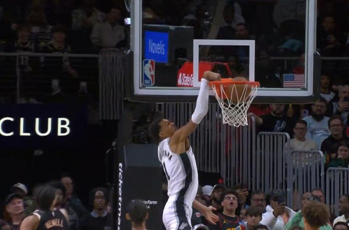 有点夸张!文班亚马篮下起飞过高用手腕空接扣进