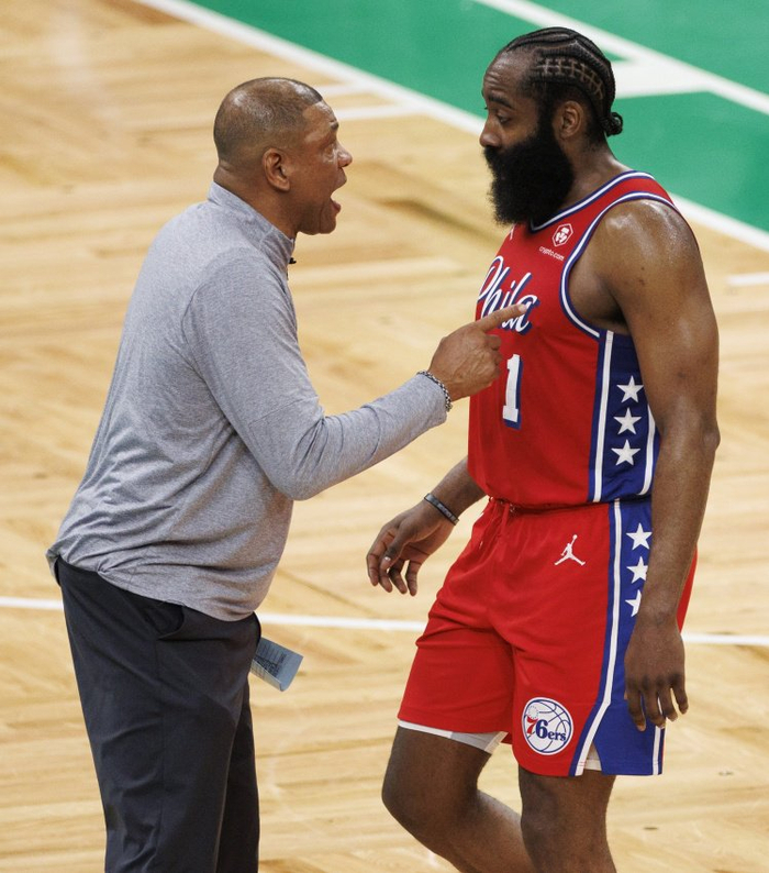 在76人的两个赛季里,哈登和里弗斯对胜利有着不同的理念。这位三届得分王固守一种打法,而里弗斯希望战术体系能向他2008年夺冠时的风格靠拢。