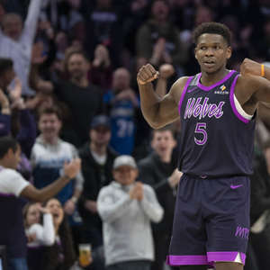 本赛季至今,爱德华兹场均28.7分5篮板3.8助攻1.3抢断0.9盖帽。