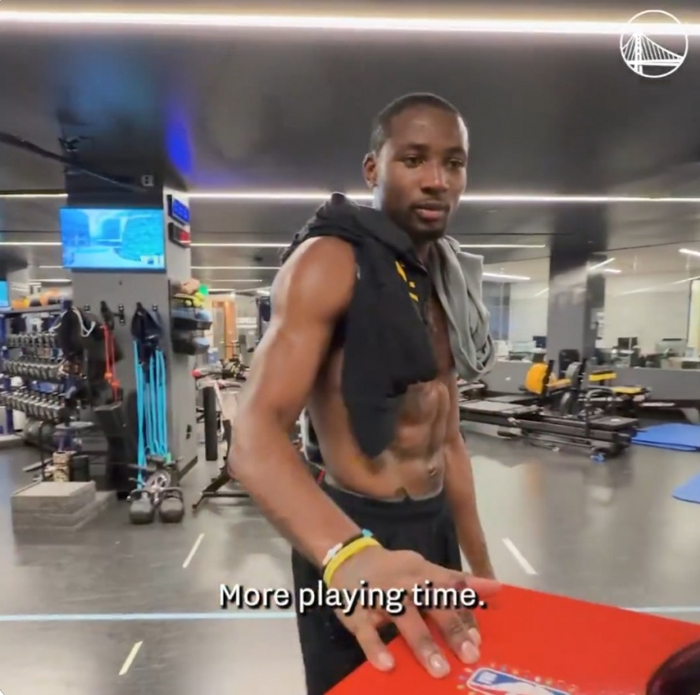 库明加抽到斯潘塞,礼物:更多的出场时间(More playing time),库明加说完拍了两下抽奖箱离去