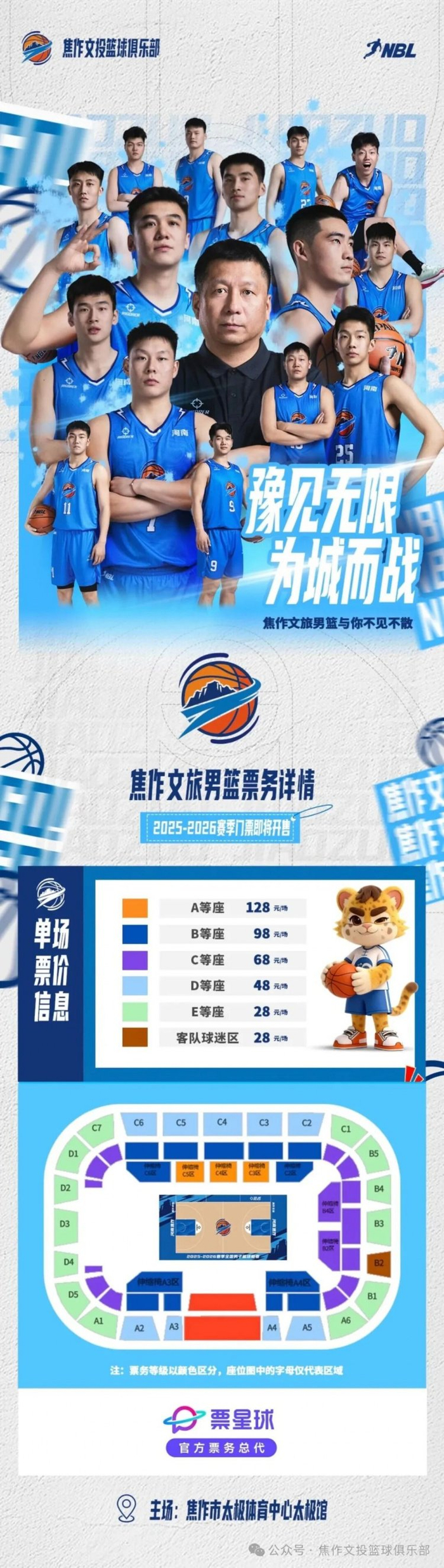 河南焦作文旅男篮 VS 贵州猛龙的主场战役已正式开票