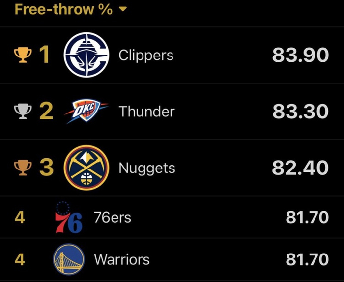 快船今日罚球31中29 赛季罚球命中率来到83.9% 升至联盟第1