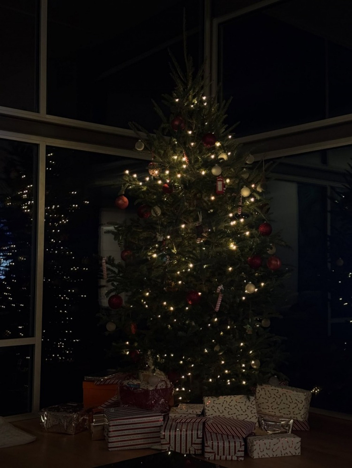 她还配文写道:“第一次一起过圣诞。”