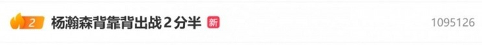 赛后,“杨瀚森背靠背出战2分半”话题冲上了微博热搜榜第二位。