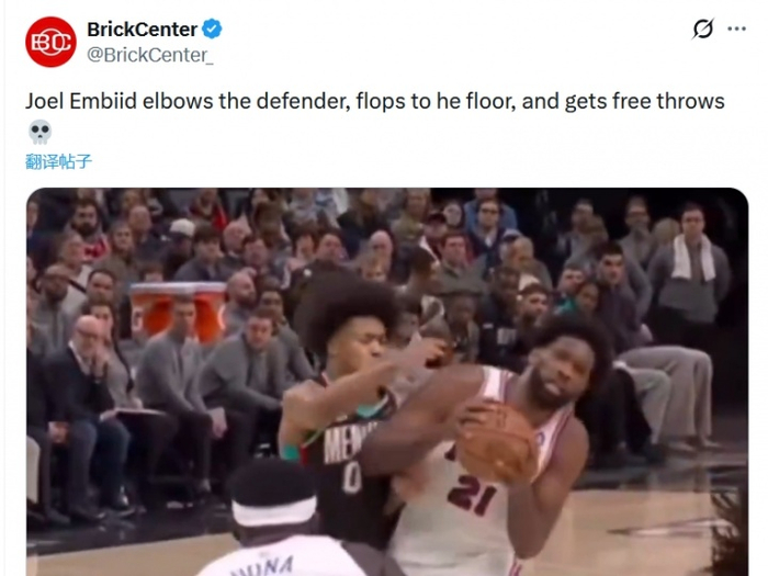 美媒打趣:恩比德一肘一倒,罚球就来了!
