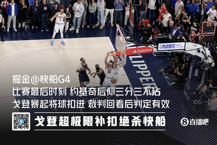 系列赛G4,约基奇三分不中,戈登神奇补篮绝杀快船。