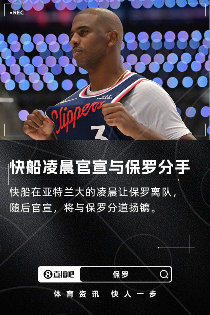 快船在亚特兰大的凌晨让保罗离队,随后将这位曾经的球队功勋老将遣送回家,而他此前不久才宣布这将是他生涯最后一个赛季,如此的分手方式也是令外界唏嘘不已。