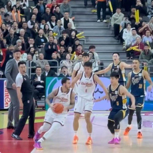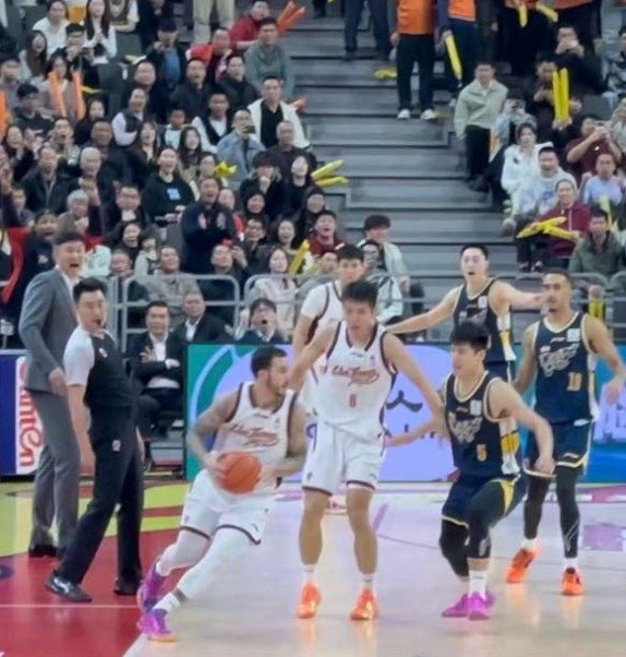 比赛最后阶段,裁判曾通过多次回看,界定广东球员陈家政三分踩线为长两分。