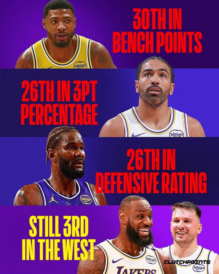 相当反差!湖人战绩西部第3 但板凳得分&防守效率值等均为倒数