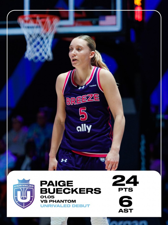 直播吧1月6日讯 第二届Unrivaled联赛今天开打,WNBA球星佩奇·布克斯所在的Breeze以69-62击败Phantom。