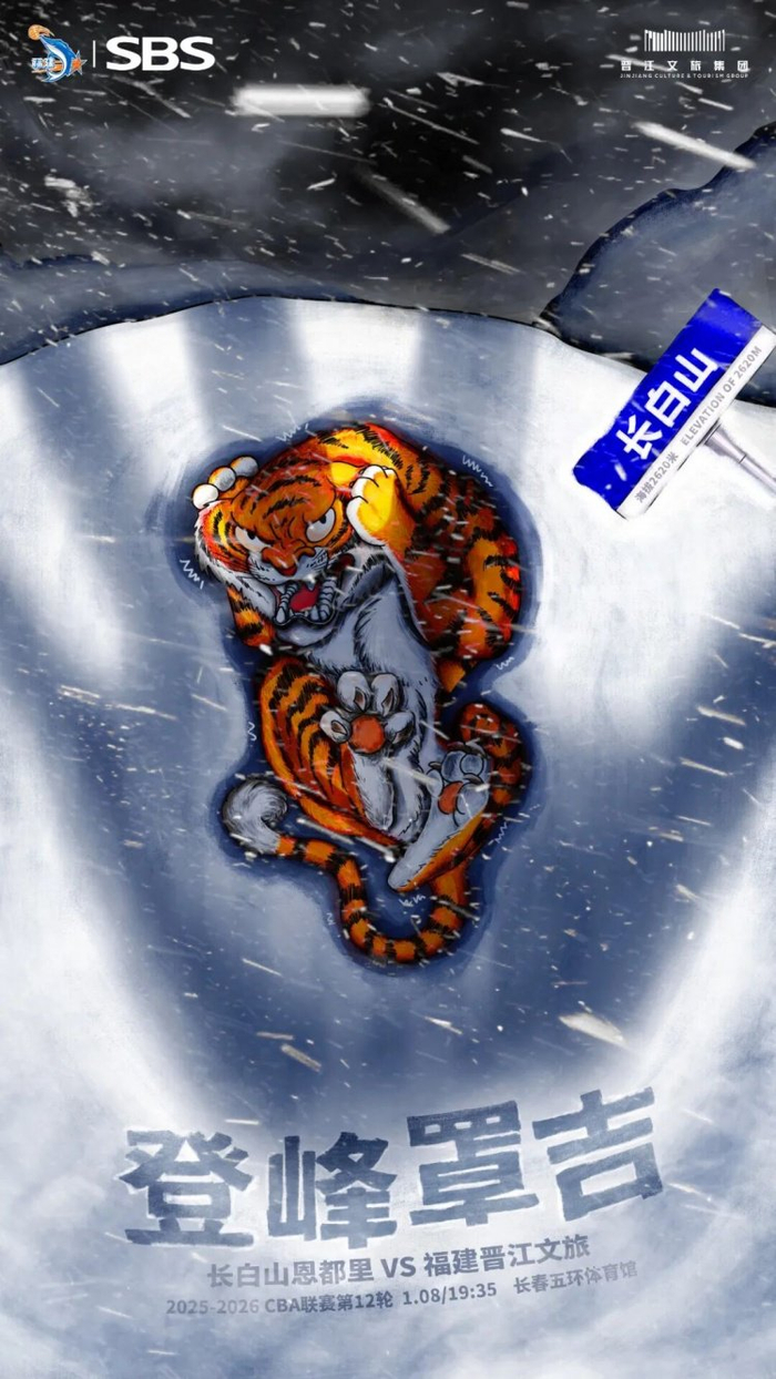 2025-2026赛季CBA常规赛第十二轮明晚继续进行,福建晋江文旅男篮远赴吉林,明晚(1月8日)19:35对阵长白山恩都里男篮。