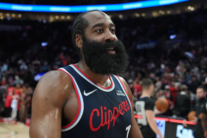 本赛季,哈登场均25.7分4.8篮板8助攻。