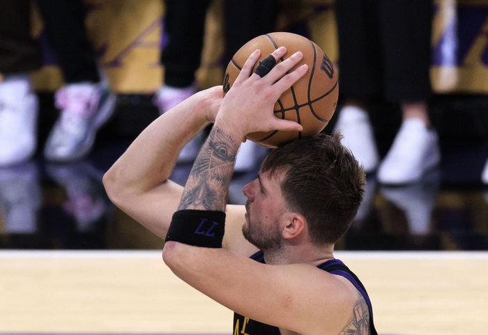 直播吧1月8日讯 NBA常规赛,湖人客场91-107不敌马刺。东契奇此役出战38分19秒,26中13,其中三分9中2,罚球16中10,得到38分10篮板10助攻2抢断,正负值-7。
