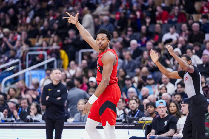 上半场比赛,斯科蒂·巴恩斯进攻端发挥出色,各种冲击内线还能造杀伤,带队拉开比分。