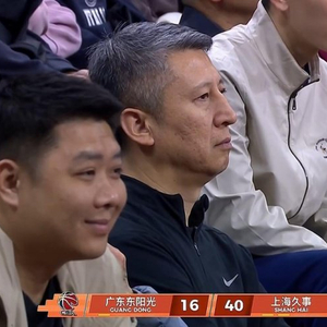 来看谁?男篮主帅郭士强观战广东对阵上海 表情非常严肃