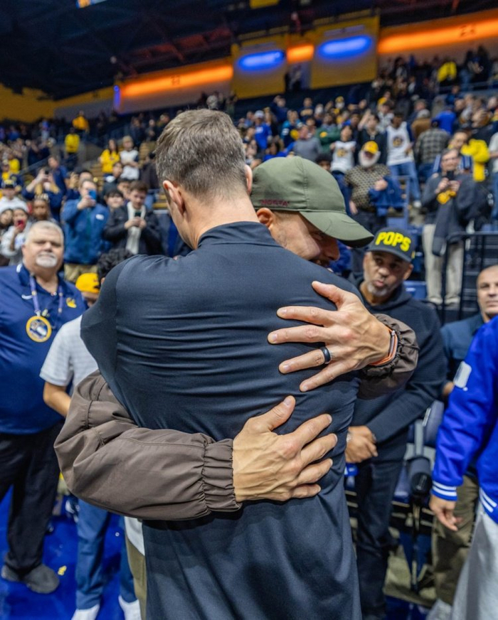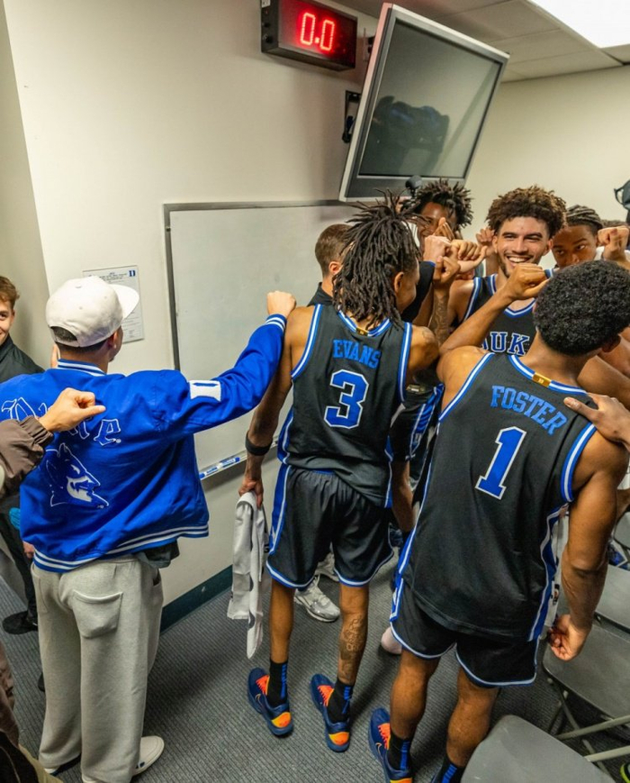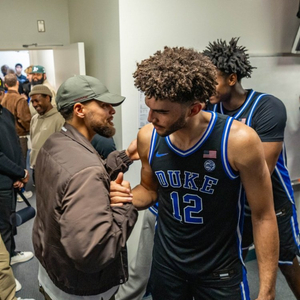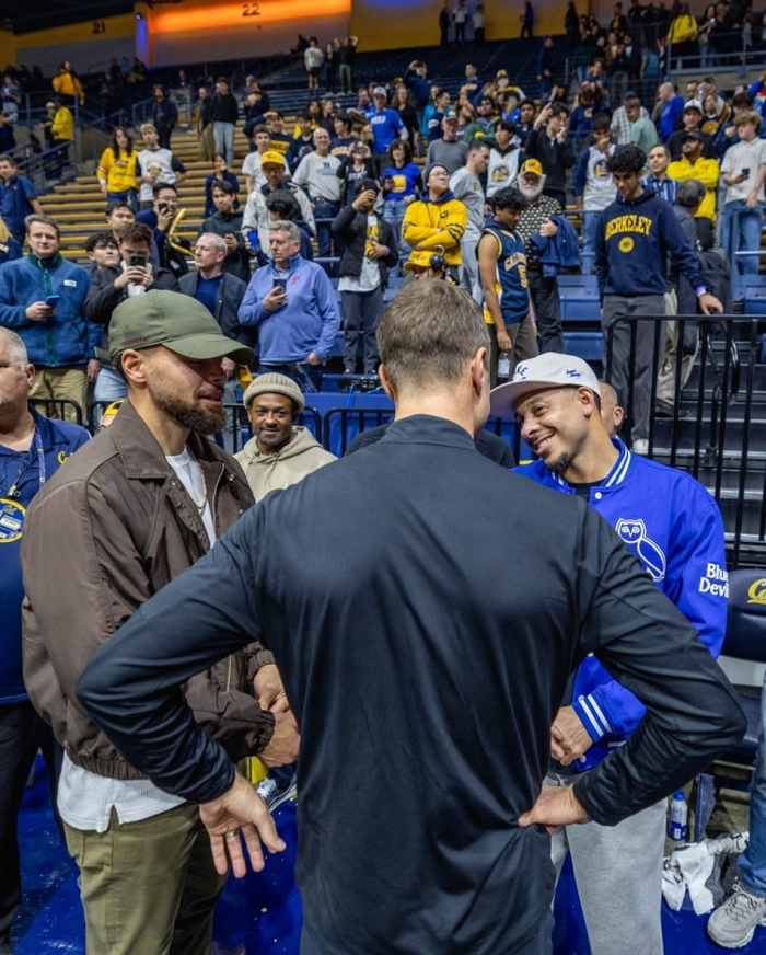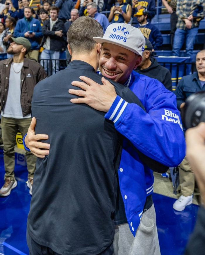 赛后戴尔·库里、斯蒂芬·库里、赛斯·库里父子三人到访了杜克的更衣室,而作为校友的赛斯见到这群学弟们也非常开心。