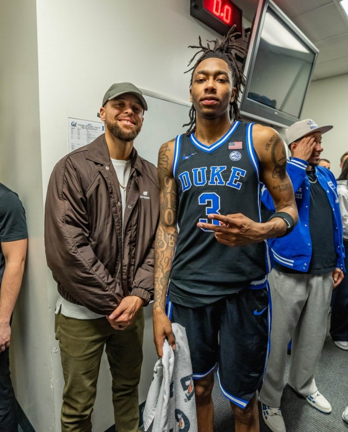 库里父子探访杜克男篮更衣室!斯蒂芬与热门秀卡梅隆·布泽尔同框