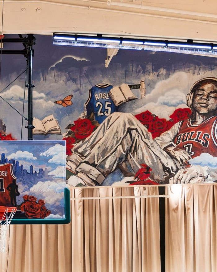 这幅壁画由艺术家德怀特·怀特创作,灵感来自罗斯标志性的成长之路以及他与芝加哥之间深厚的联系。怀特和该组织的艺术学生们一起合作,共同塑造了这件作品的整体构想和创意细节,最终让这幅令人惊叹的作品呈现在大家眼前。