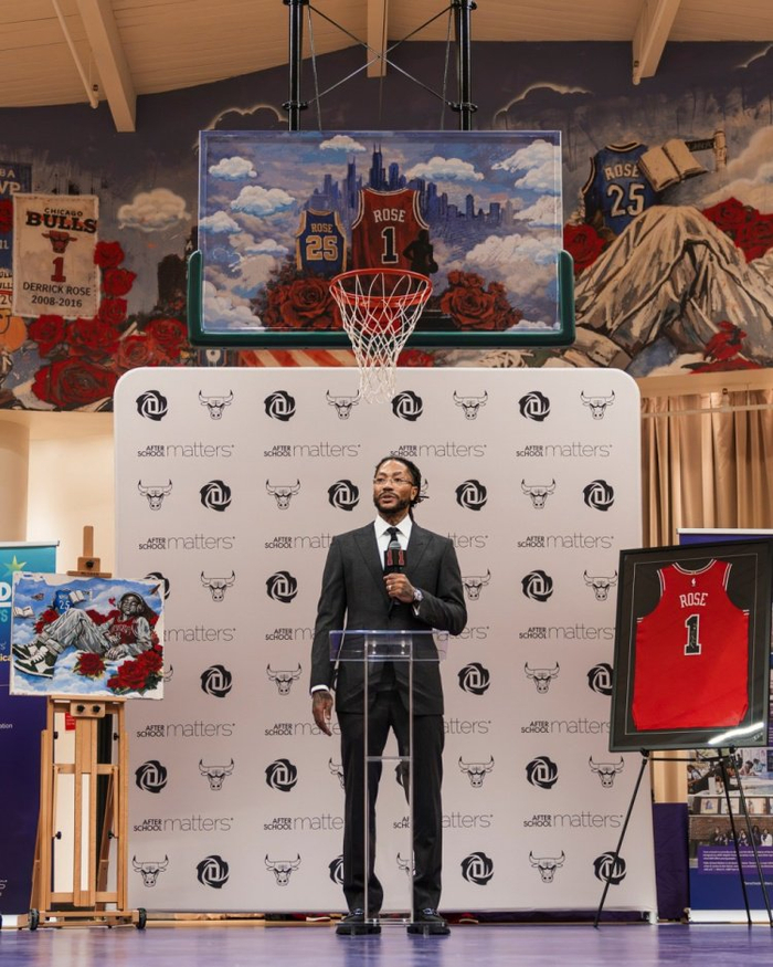 罗斯亲临!公牛在芝加哥当地青少年组织球场为罗斯新添巨幅壁画!
