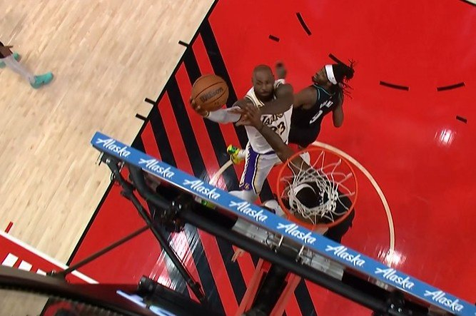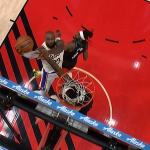追击者!詹姆斯转换反击碾到篮下 对抗防守强攻打成2+1