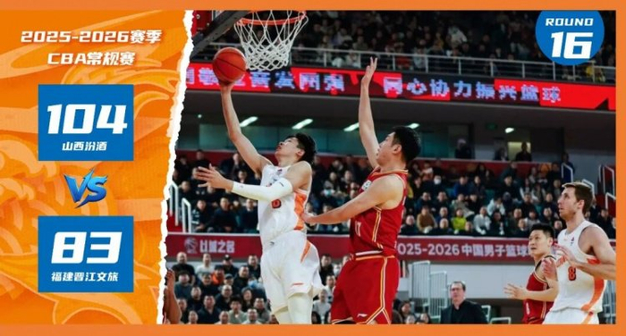 2025-2026赛季CBA常规赛第16轮,福建晋江文旅男篮客场挑战山西汾酒男篮。主队经过首节的慢热以及第二节的调整反扑,仅落后5分进入下半场;第三节成为整场比赛的转折点!主队外援威廉姆斯的过早犯规离场打乱了内线轮换节奏,篮板球的失守成为了主队溃败的导火线,最终全场结束,主队以83-104不敌对手。四节比分分别是:18-30,27-20,18-33,20-21(福建晋江文旅男篮在前)。