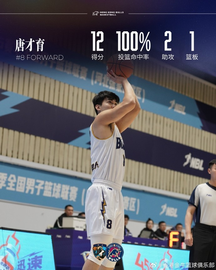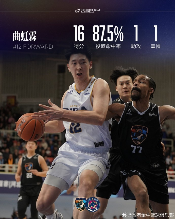 香港金牛战胜张家口体文旅,在结束四连客征程的同时收获十连胜。此役全队表现优异,六人得分上双:曲虹霖内外开花,得到全队最高的16分;唐才育以百分之百命中率贡献12分;董健在次节手感火热,多次命中超远三分,全场得到12分7篮板;首次先发出战的张祖铭取得11分3篮板3助攻;刁展望与厄特尔稳定输出,分别贡献10分4抢断和10分2篮板。