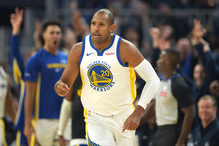 上半场,勇士内线霍福德表现可以,替补出战11分钟,投篮6中2,三分球5中1,拿到5分4篮板1助攻的数据,正负值+12两队最高。