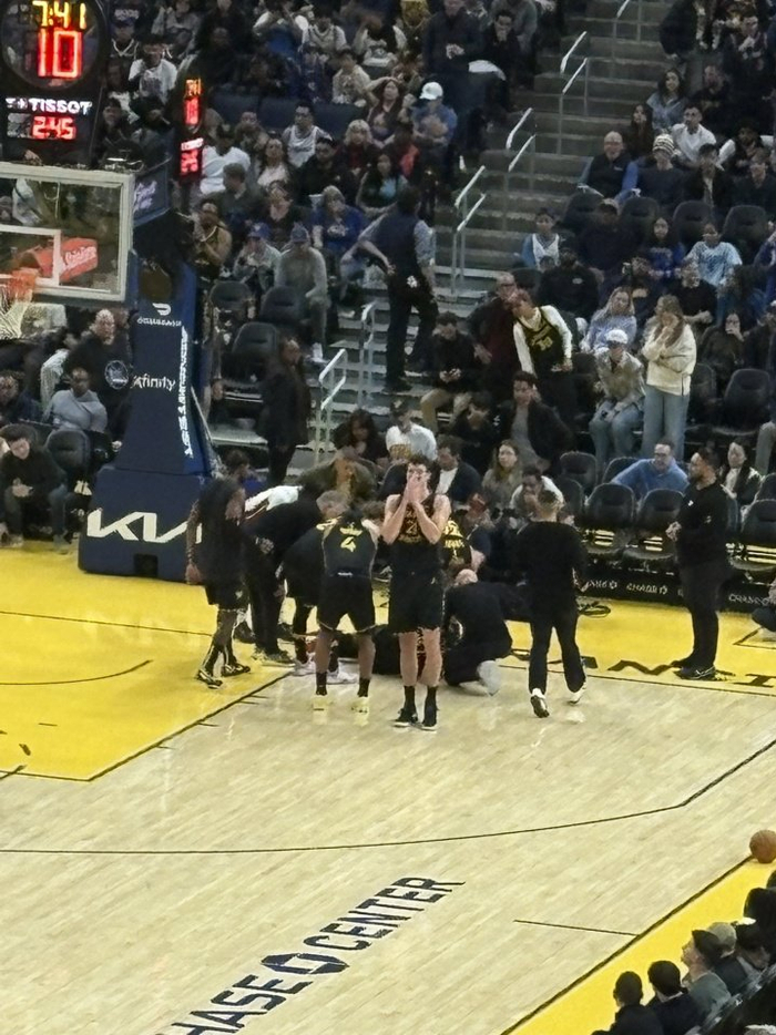 勇士球员围绕着巴特勒 波斯特不敢看背身祈祷🙏