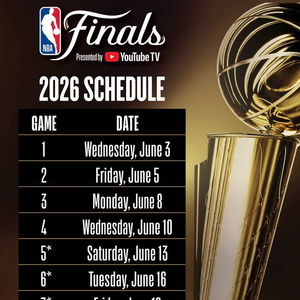 本赛季总决赛日程安排:G1将在6月4日开打 最迟6月20日结束