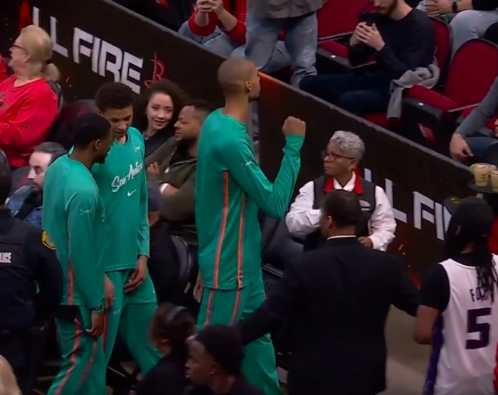 文班离场时握拳“庆祝”