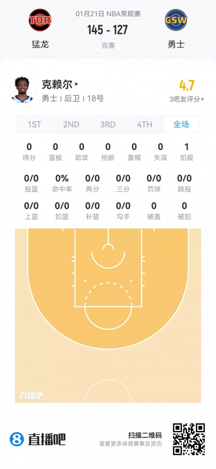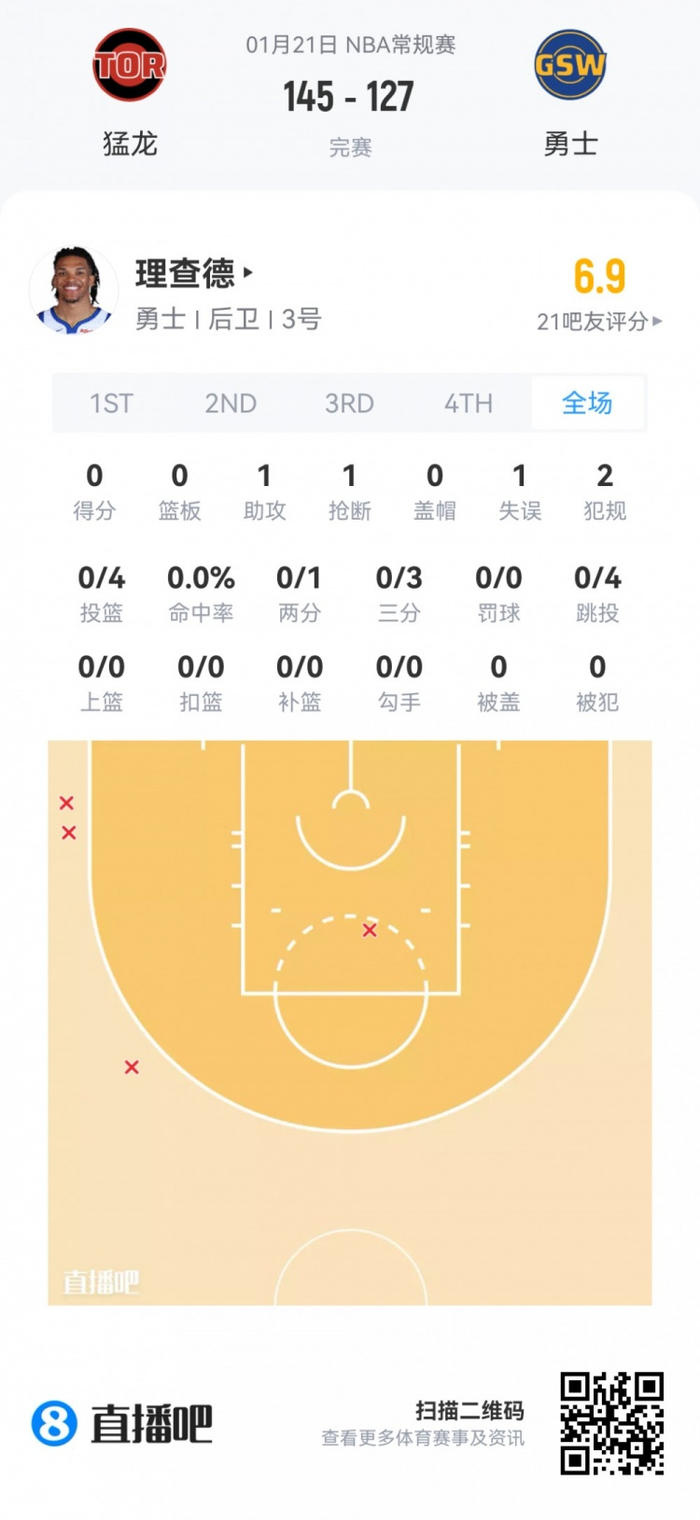 勇士次轮56号秀威尔·理查德 登场23.3分钟