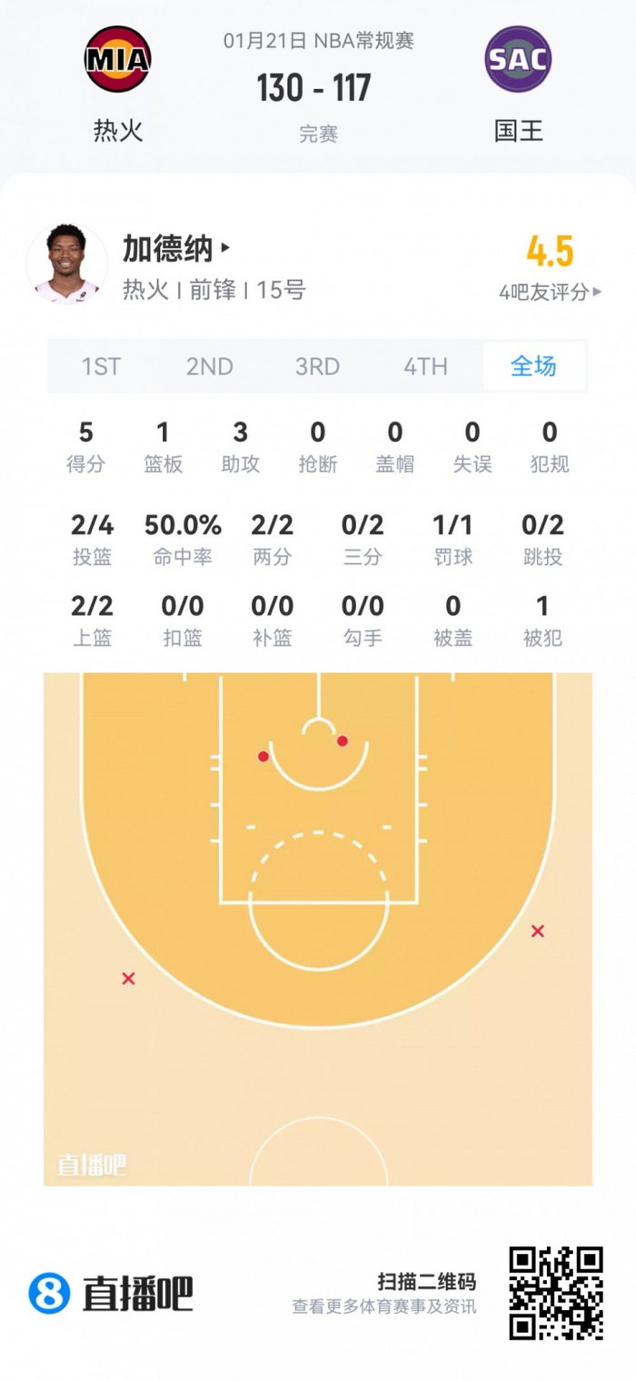 热火落选秀迈伦·加德纳 登场14.8分钟