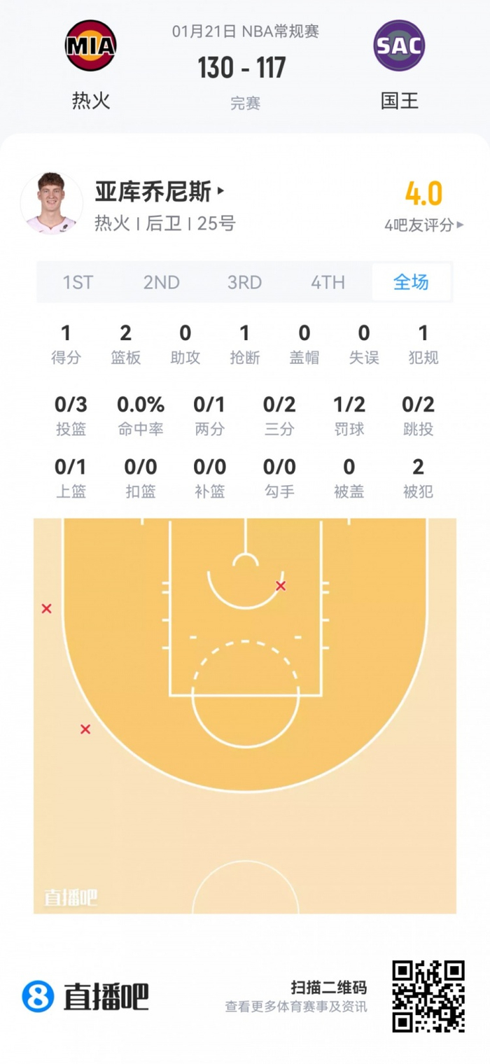 热火首轮20号秀亚库乔尼斯 登场16.9分钟