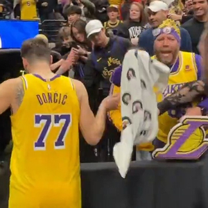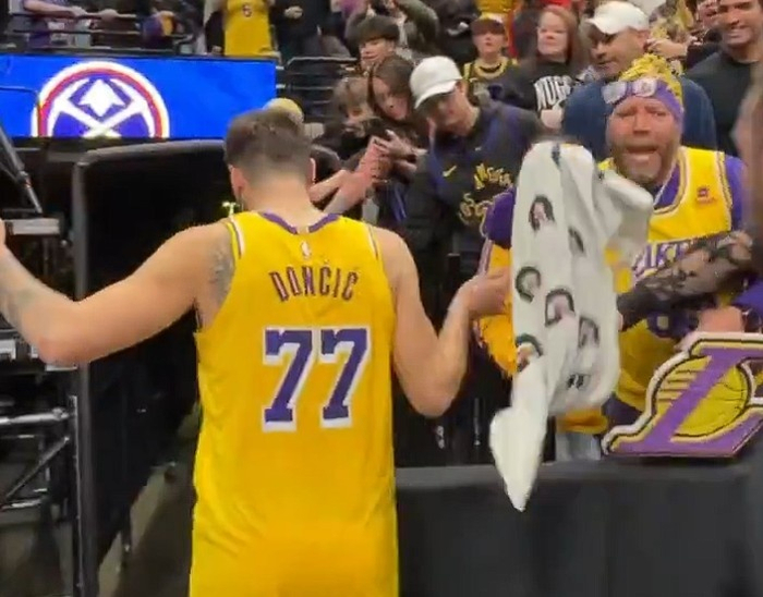 詹姆斯和东契奇赛后都为球迷送上原味儿毛巾 球迷都欣喜若狂