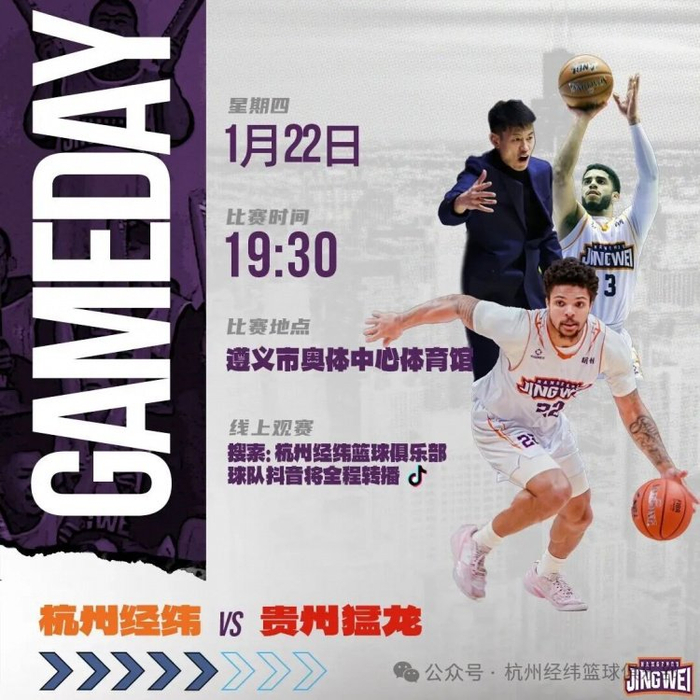 1月22日 19:30(周四)锁定杭州经纬篮球俱乐部直播间!